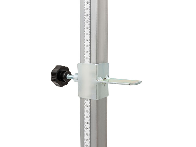 Cursore poggia asticella con indicatore per la lettura dell'altezza e volantino a vite per il fissaggio fissaggio.