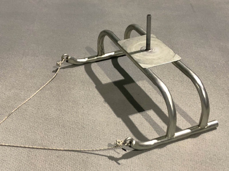 Slitta da traino in acciaio con binari e pianale rialzato per consentirne l'utilizzo anche con i blocchi di partenza.